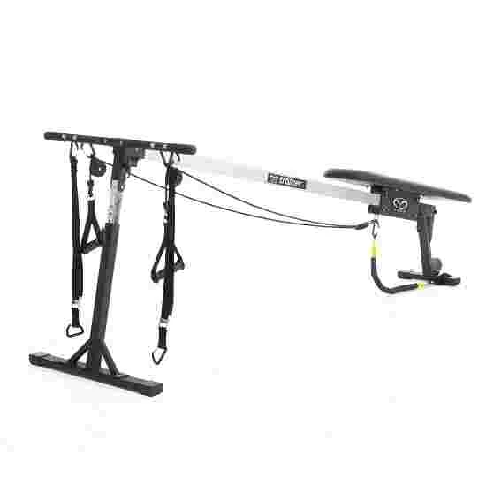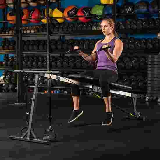 The deluxe model. With the Vasa Trainer Roller Bench ‘Pro’ you train using your own bodyweight and an adjustable angle of the roller rail. Additional rubber brakes reduce the centrifugal force of the sliding bench in the end phase of the movement. Stacking weights are optional and can be bought separately. ‘Power-Cordz’ can also be added to increase the training intensity. Stainless steel roller rail with height adjusting mechanism, epoxy-coated steel frame, padded sliding bench and deluxe cable system. Robust design for use in clubs. For indoor use and dry outdoor facilities.